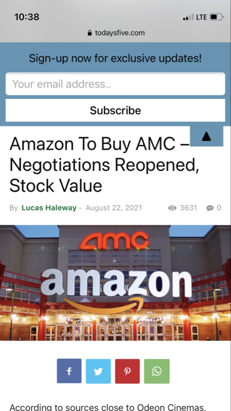 AMC Entertainment AMC has been linked to a possible deal with Amazon AMZN for a long time. The Amazon stock price gained. Our target is AMC period.